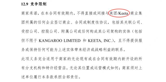 Keeta 在法庭文件中表示,99Food 与核心商户签订的这类"排他性条款"违反竞争法,寻求法院判决条款无效并禁止其在未来合同中的使用。
