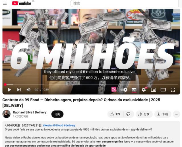 最初是一个巴西自媒体爆料,称滴滴 99Food 向商户开出巨额现金报价,以签订"半独家",99Food 要求商户不得与 Keeta 合作易盛通,但可以继续跟 iFood 合作。