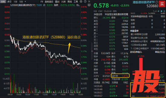 与A股医药核心标的一样,港股通创新药ETF(520880)全天溢价交易,且溢价幅度显著更大,溢价率一度飙升逾1%!近日该ETF资金面同样火热,近5日净流入逾1.28亿元。