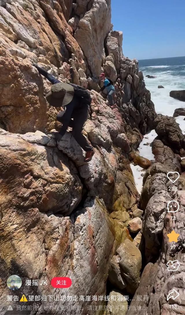 他反复提醒人们,望郎归美丽的背后暗含危机。"南澳山海很美,但未开发区域、非常规路线千万别去,特别是悬崖边、海边礁石等危险地方,很容易发生迷路、受伤甚至坠海等意外。"