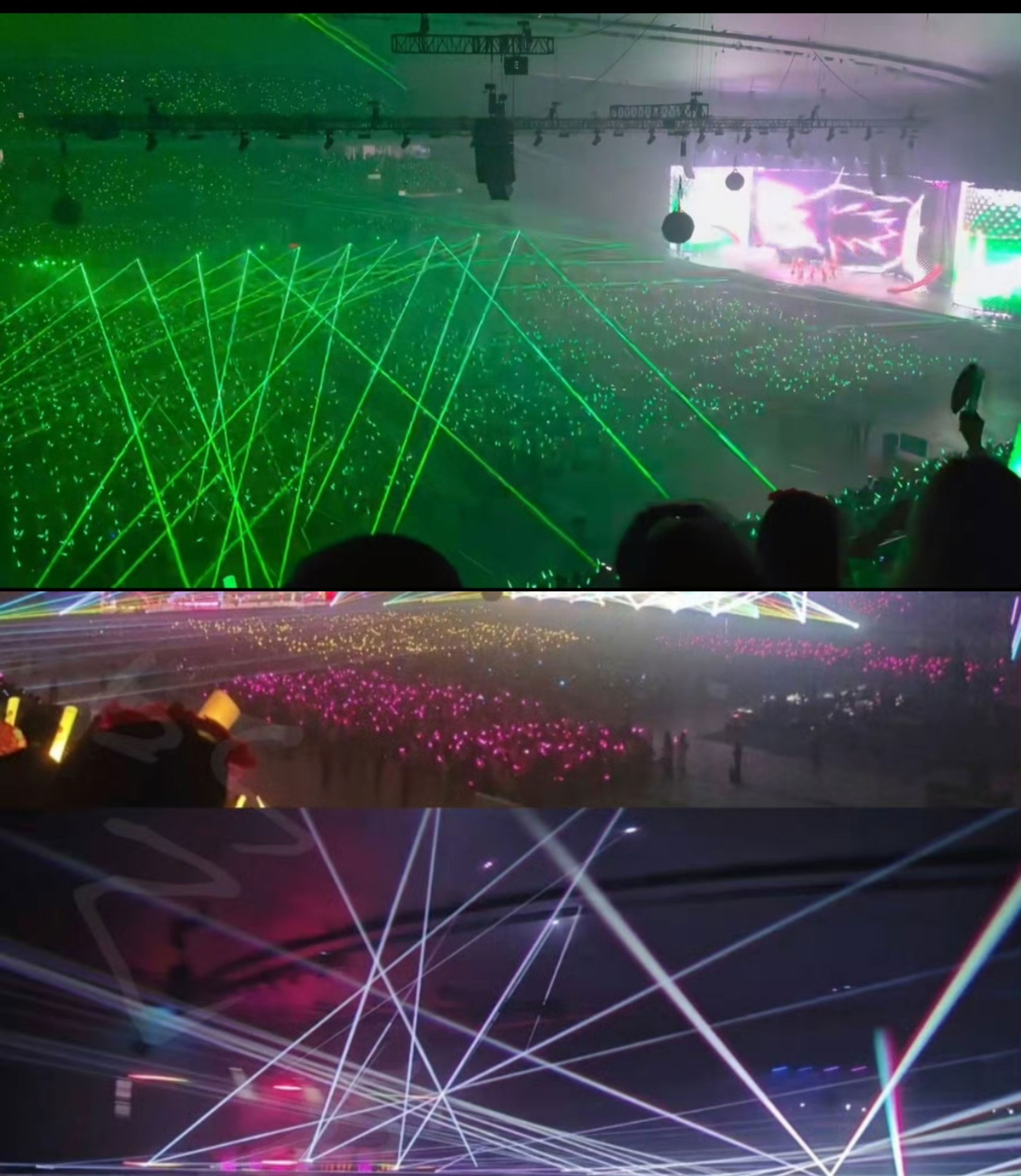 当观众踏入演唱会现场,仿佛进入了一个科幻光影世界。舞台上,数量远超常规的激光束纵横交错,编织出一张动态光网。演出时,激光随着音乐节奏疯狂跳跃、闪烁。欢快的歌曲响起,激光就如活泼的精灵,快速变幻出各种绚丽图案,时而化作流星划过,时而如烟花般绽放 ;在抒情曲目里,它们又变成温柔的光带,轻轻环绕舞台,营造出浪漫氛围。