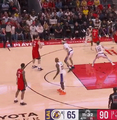 比赛的转折点出在第三节。火箭队突然开启“暴走”模式,单节打出一波34-18的攻击狂潮,直接把分差彻底拉开,将胜利稳稳揣进兜里,也毫不留情地粉碎了湖人提前晋级的美梦。